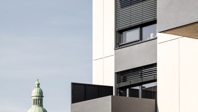 Novostavba se nachází v blízkosti městského centra, na jedné