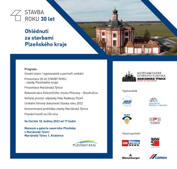 V úvodu vystoupí krátce ředitel Mariánské Týnice se zástupci jednotlivých vypisovatelů, bude krátce představena rekapitulace stavebnictví a architektury za 30 let a představeny budou oceněné stavby celorepublikové prestižní přehlídky z Plzeňského kraje. Pan architekt Soukup představí úspěšnou realizaci oceněné Mariánské Týnice, architekt Jakub Mareš představí úpravy veřejného prostoru náplavky řeky Radbuzy, bude představena blíže úspěšná rekonstrukce mostu Pňovany – Bezdružice a následně pan architekt Soukup krátce provede oceněnou částí Mariánské Týnice.