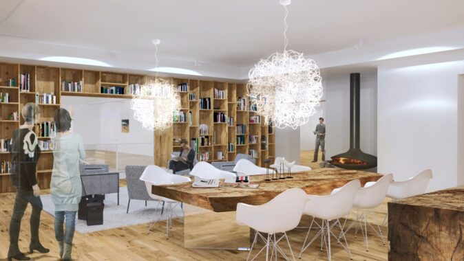 knihkupectví a přednášková místnost, nabízet bude program pro veřejnost.