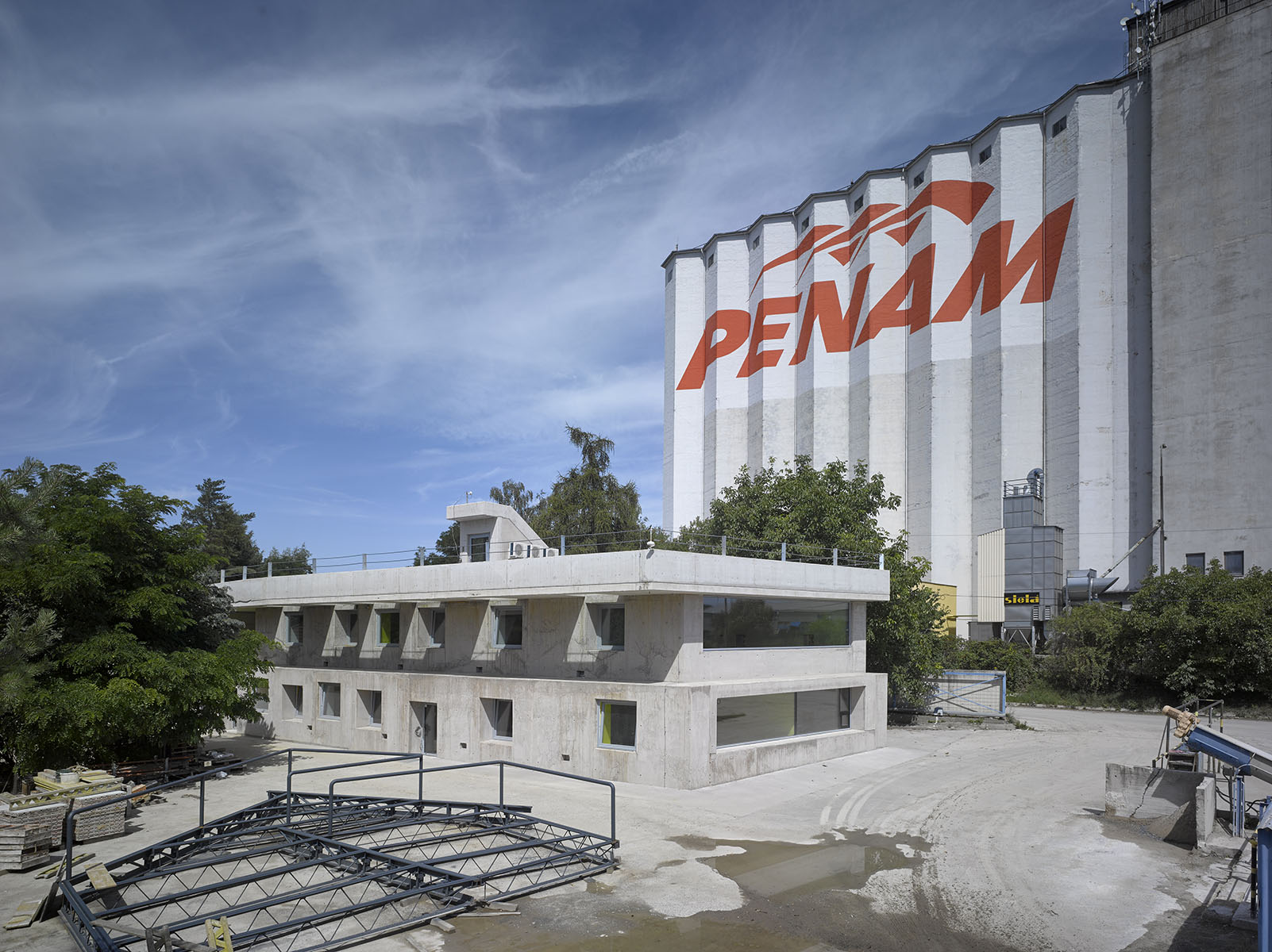 Industriální prostředí, klient, který neuvažuje konzervativně a je velmi kreativní, náplň práce firmy, přítomnost betonárky. Celkový syrový charakter zadání, krásné autentické místo…
