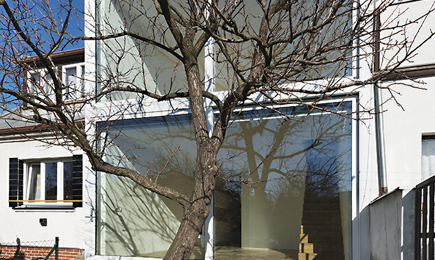 1930. Šířka parcel je pět metrů, hloubka původních domků 7,2 m. V původním