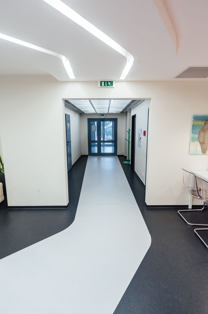Hlavním stavebním problémem prostoru byl nedostatek přímého denního osvětlení a komplikovanost infrastruktury vedené pod stropem. Při nové artikulaci prostoru byl stěžejní otisk nové informace do základních stavebních prvků, stěn, stropu a podlahy. Vytvoření architektonického jazyka pro koherentní repertoár, který dokáže vytvořit jasnou navigaci a orientaci v prostoru.