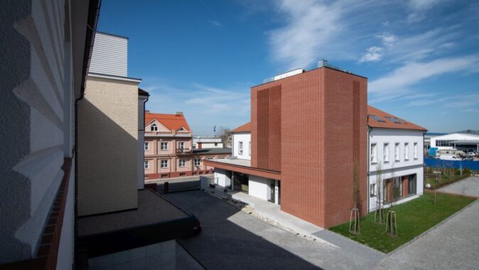 Objekt byl původně součástí areálu ZZN České Budějovice. Byly v něm byty a část administrativy. Navazoval na něj přístřešek s velkým skladem na krmiva pro hospodářská zvířata. Součástí areálu byla i železniční vlečka. Začátkem 90. let vše přešlo do majetku tehdejších Jihočeských mlékáren. Hlavní budova skladu na krmiva byla odstraněna v roce 2005, o rok později i vlečka. Objekt i nadále sloužil částečně jako bytový a částečně jako archiv a sklady CO. V posledních letech již ale využíván nebyl a vzhledem k jeho stavu bylo rozhodnuto o celkové rekonstrukci, v rámci které byl rozšířen o vstupní část a přistavěnou šachtu pro hydraulický výtah obsluhující jednotlivá podlaží. Rekonstrukce začala demolicí původní vrátnice společnosti a stavební úpravy byly zahájeny v roce 2015. Současně s přestavbou bylo upraveno i jeho okolí a bylo vybudováno dostatečné množství parkovacích stání.