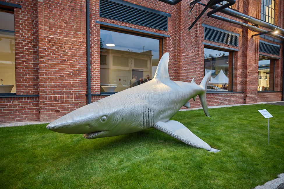 „Nikdy nevíme, co přesně nás čeká na konci tunelu“ – tato myšlenka prostupuje celou site-specific instalací sochařky Veroniky Psotkové. Její kompozice figur z rabicové sítě, materiálu, který je pro autorčin rukopis typický, pluje prostorem elektrárny a vytváří tajemný prostor evokující podvodní svět.