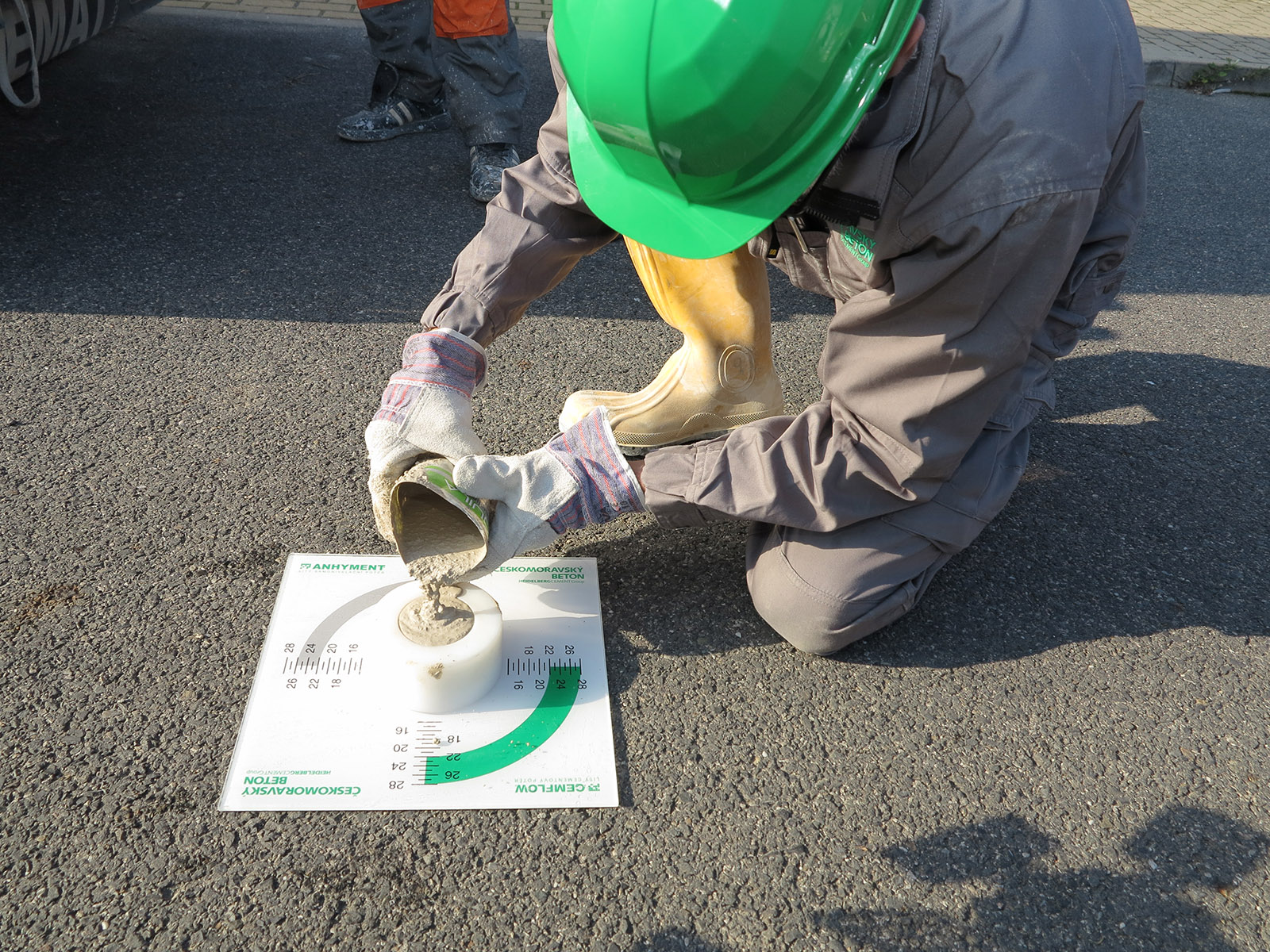 při výrobě na betonárně a poté při přejímce zpravidla zpracovatelem směsi –