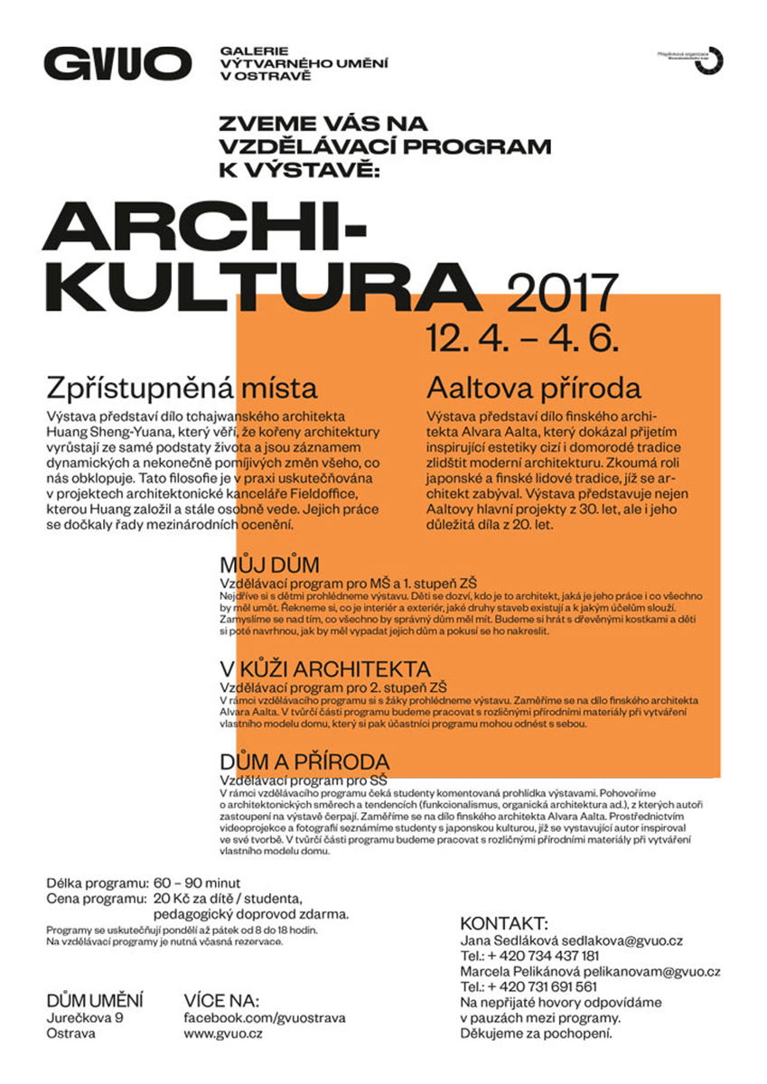 IX. ročník mezinárodního festivalu architektury, designu a umění ARCHIKULTURA 2017, je přehlídka zaměřená na architektonická témata v tom nejširším pojetí a navazuje na předchozí ročníky. / ARCHICULTURE 2017, the 9th Annual International Festival of Architecture, Design and Art, is an exhibition aimed at architectonic themes in the broadest conception of the term.