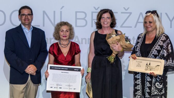 Architekt obci 2023 se: „Dolním Břežanům díky starostům Ing. Věslavu Michalikovi a Mgr. Matěji Novákovi, kteří