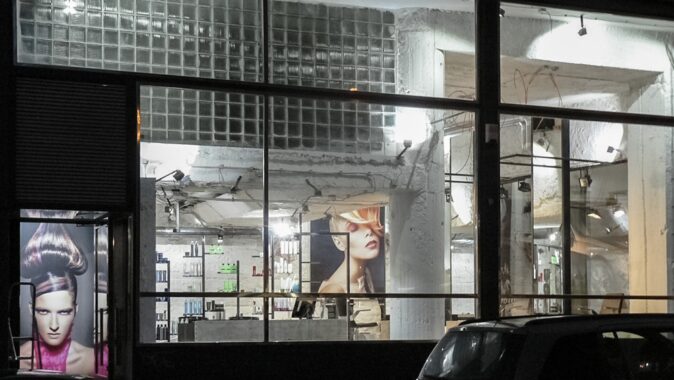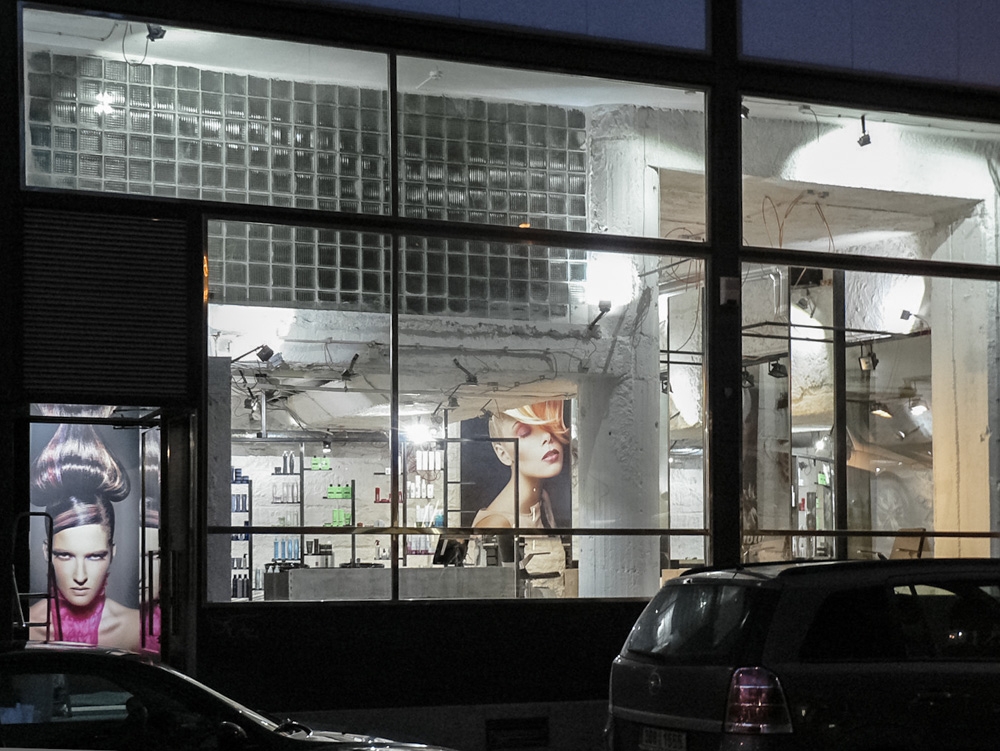 symetricky umístěné ateliéry módního salonu a kadeřnictví. Bohužel díky