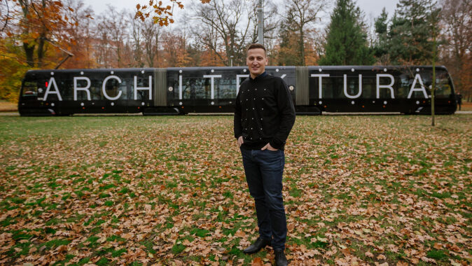 nesoucí nápis ARCHITEKTURA, která bude zdobit ulice celý další rok a