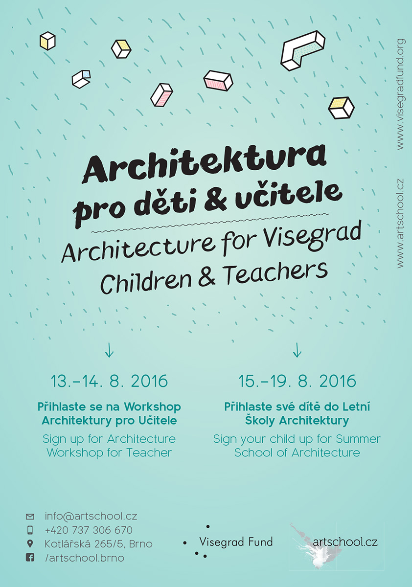 ArtSchool I Art’s Cool ve spolupráci s International Visegrad Fund představuje projekt Architektura pro děti a učitele s cílem šířit všeobecné povědomí o architektuře a s ním spojenou důležitost vlivu architektury na naše okolí a přírodu. To vše pro děti v předškolním věku, žáky, učitele a všechny aktivní občany, kteří se chtějí zapojit a přispět do již počínající revoluce ve výtvarném a environmentálním vzdělávání.