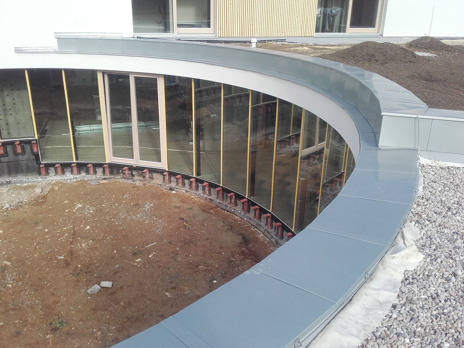 Technologie zpracování: kazetová fasáda včetně oplechování (zavlečené vyráběné kazety)