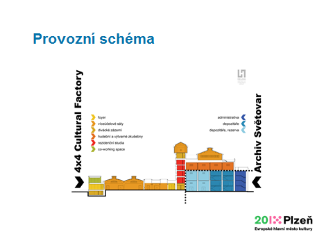 Pro sousední nižší budovu, která se měla změnit na kulturní fabriku pro alternativní kulturu, bude město hledat partnera, který území včetně vily u Koterovské ulice a dalších objektů směrem k depu zainvestuje a bude ho rozvíjet. „Je jasné, že kulturní fabrika 4×4 už tam nebude. Mohou tam být prostory pro podnikání,“ řek primátor.