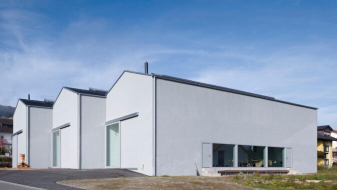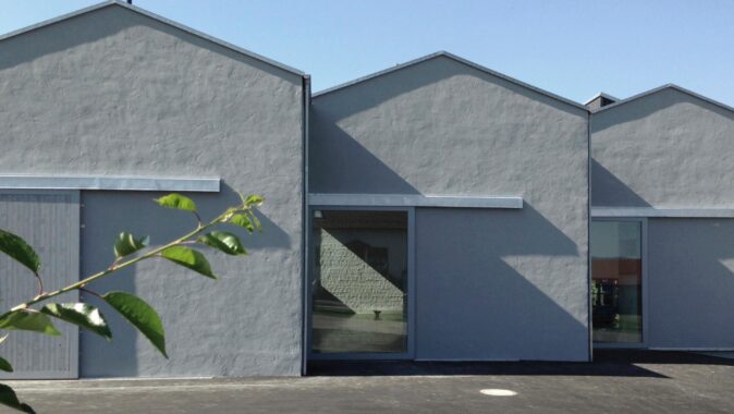 Výsledkem jsou tři haly, stejně vysoké a široké, ale s odlišnou délkou. Budova dokonale zapadá do zemědělské oblasti – má sedlovou střechu,