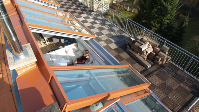 Zakomponování střešních oken do památkově cenných budov je disciplínou pro trpělivé architekty a investory. Zde představené realizace z hlavního města Prahy z posledních zhruba pěti let vynikají hodnotou prosvětleného a otevřeného moderního bydlení. Velkoplošná střešní okna dávají bytům novou kvalitu. Nabízejí dechberoucí výhledy na panorama města kolem a velmi dobrý pocit pro obyvatele uvnitř podkroví.