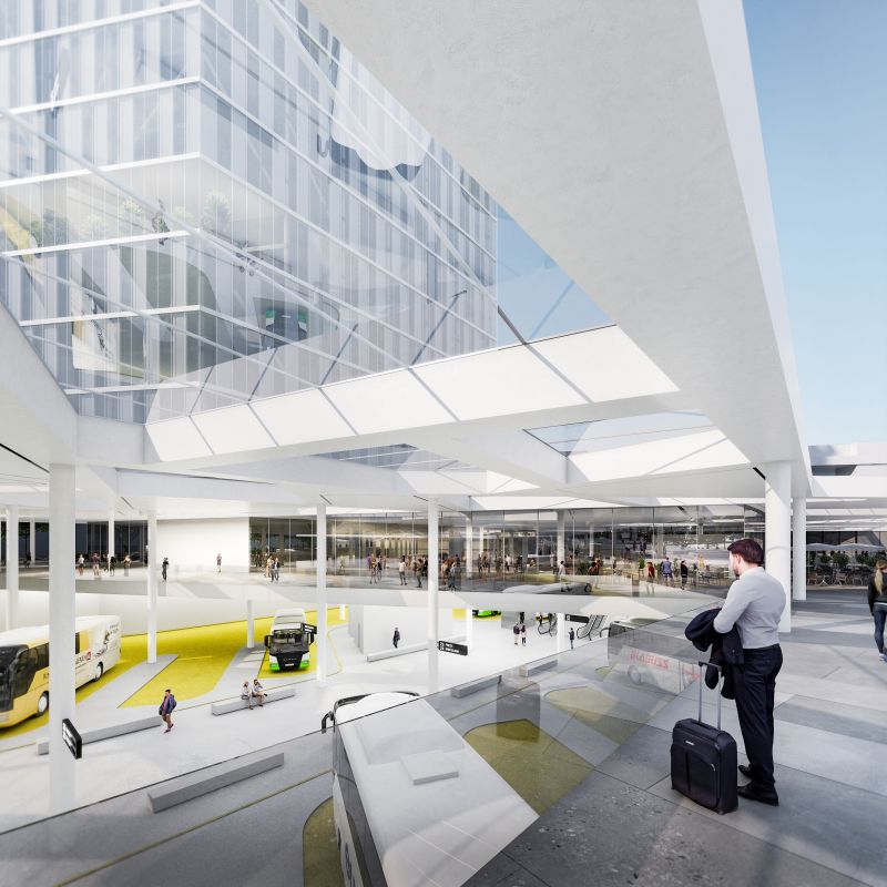 Terminál má sjednotit příjezdy a odjezdy dálkových autobusů, které zatím musí zajíždět na různá nádraží. Terminál s výraznou prosklenou a ozeleněnou střechou bude zprovozněn nejdříve v roce 2025. Na místě vyroste i výšková budova a vyhlídka na Dunaj.