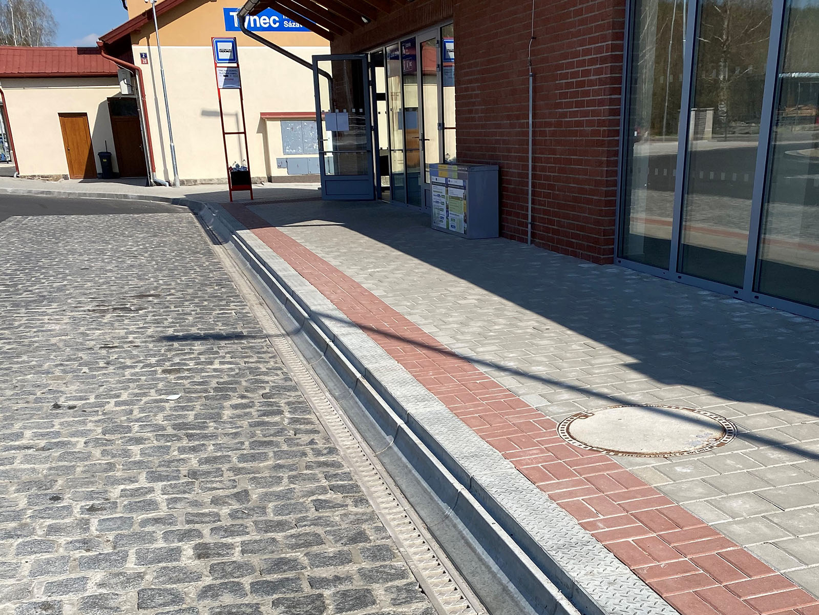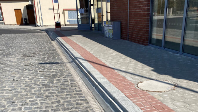 V případě liniového odvodnění se dá vzniku kaluží předejít tím, že se do styku hrany chodníku a silnice vloží monolitický žlab MEA DM. Žlab z polymerického betonu je konstruovaný pro zátěže až F900 kN a je odolný vůči příčným i podélným přejezdům těžkých vozidel. Této technické možnosti využili při rekonstrukci autobusových stání v Týnci nad Sázavou. Navíc jejich tichý přejezd nezvyšuje hlučnost místa. Zastávky jsou doplněny podélným odvodněním se žlaby MEA DM1000-1500-2000. Díky své konstrukci jsou vhodné nejen na zátěžové plochy, ale i pro rychlostní a městské komunikace.