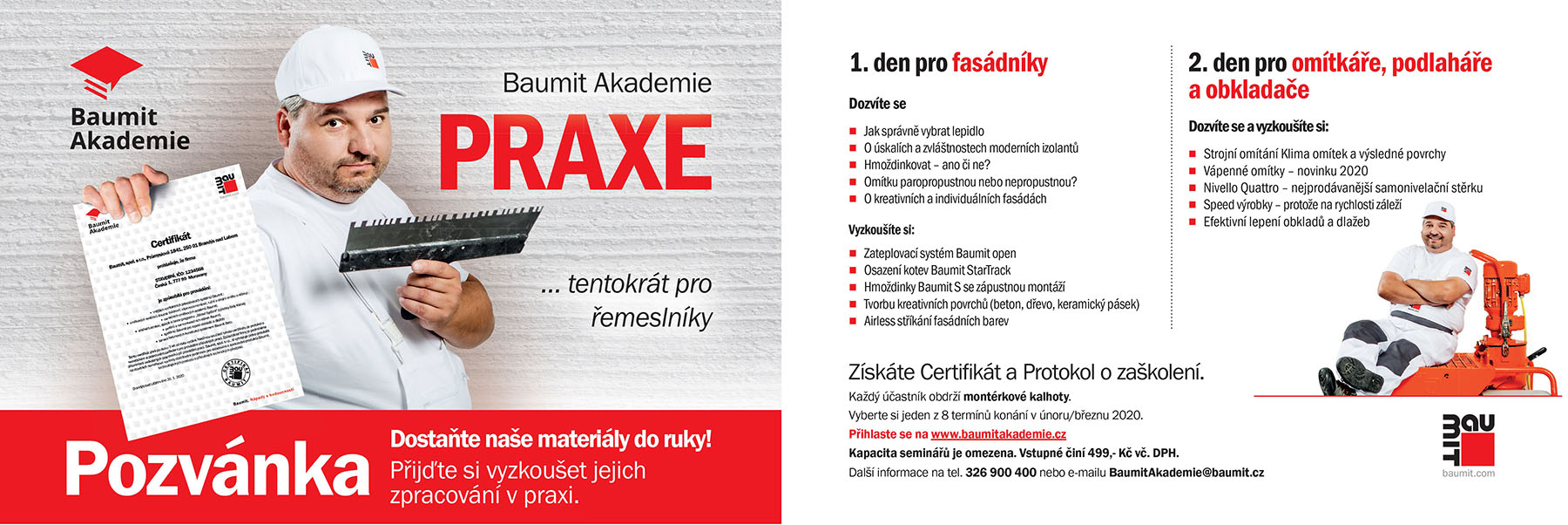 Více informací k Baumit Akademii, včetně přihlašovacího formuláře, naleznete na webových stránkách společnosti Baumit.