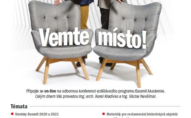 Zájem o Baumit Akademii je jako každý rok velký. Protože nám on-line prostředí dovoluje mít hodně diváků, je tu možnost i pro ty, kteří se v minulých letech nedostali do sálů po celé republice – nyní mohou vše sledovat z pohodlí svých domovů či kanceláří. Vše podstatné ohledně registrace a programu mohou zájemci najít na www.baumit-akademie.cz.
