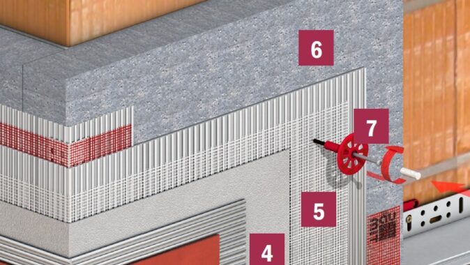 Další fáze technologického postupu se již pro oba druhy izolantu shodují. Kotvení izolantu do konstrukce obvodového pláště probíhá přes sklotextilní armovací síťovinu pomocí šroubovacích hmoždinek, jejichž počet je dán statickým výpočtem. Ucelený systém zateplení Baumit Ceramic poté umožňuje použít dva typy sklotextilních výztužných síťovin. V prvním případě lze použít jednu vrstvu síťoviny Baumit KeraTex s gramáží 343 g/m2, která se vloží do čerstvě nanesené vrstvy stěrky Baumit StarContact a prokotví se pomocí šroubovacích hmoždinek Baumit S, ejotherm STR U 2G s malými zátkami nebo hmoždinek Termoz CS 8. Druhé řešení umožňuje použití dvou vrstev standardní síťoviny Baumit StarTex s gramáží 145 g/m2. V tomto případě je ovšem velmi důležité dodržet technologický postup z pohledu včasného propojení základní stěrky s jednotlivými vrstvami sítě s cílem zabránit jejich pozdější separaci, tzv. zprahnutí.