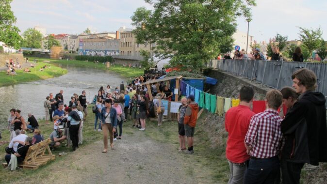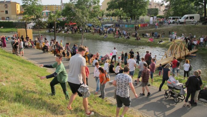 řeky Opavy. Happening s názvem NÁPLAVKA bude nyní až do soboty 18. června plnit dosud málo využívaný prostor říčních břehů kulturním