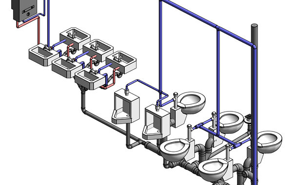 instalace složena. Je tedy nutné vymodelovat veškeré typy trubek, kolen, T-kusů