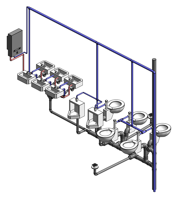 instalace složena. Je tedy nutné vymodelovat veškeré typy trubek, kolen, T-kusů