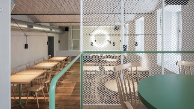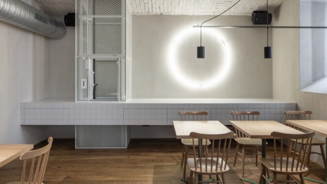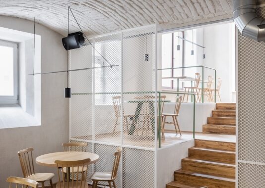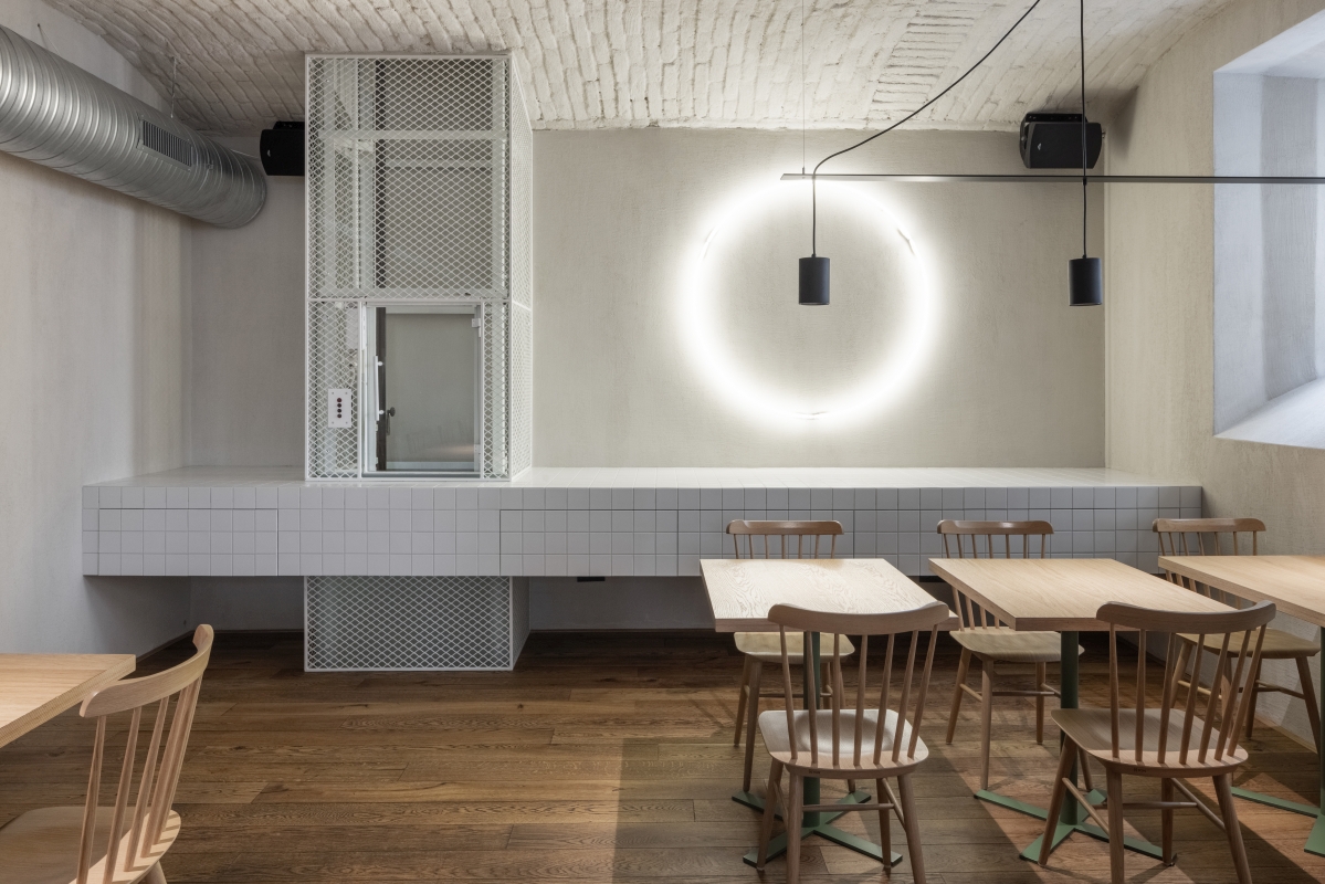 doplnkami. Priestor je unifikovaný svetlou monochromatickou farebnosťou s