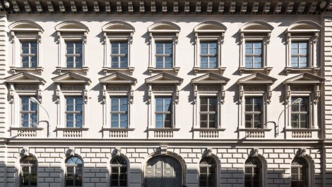 klasicky členěnou do tří průčelních zón. Jedná se o jednu z nejstarších