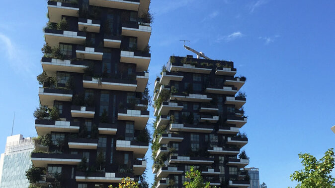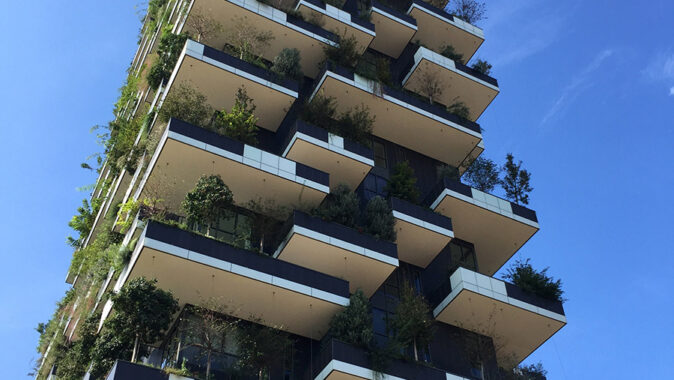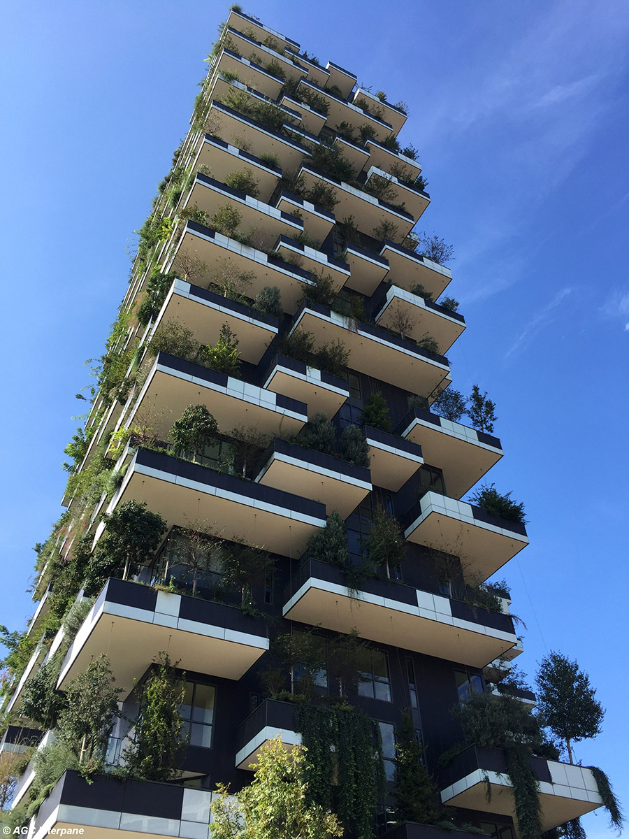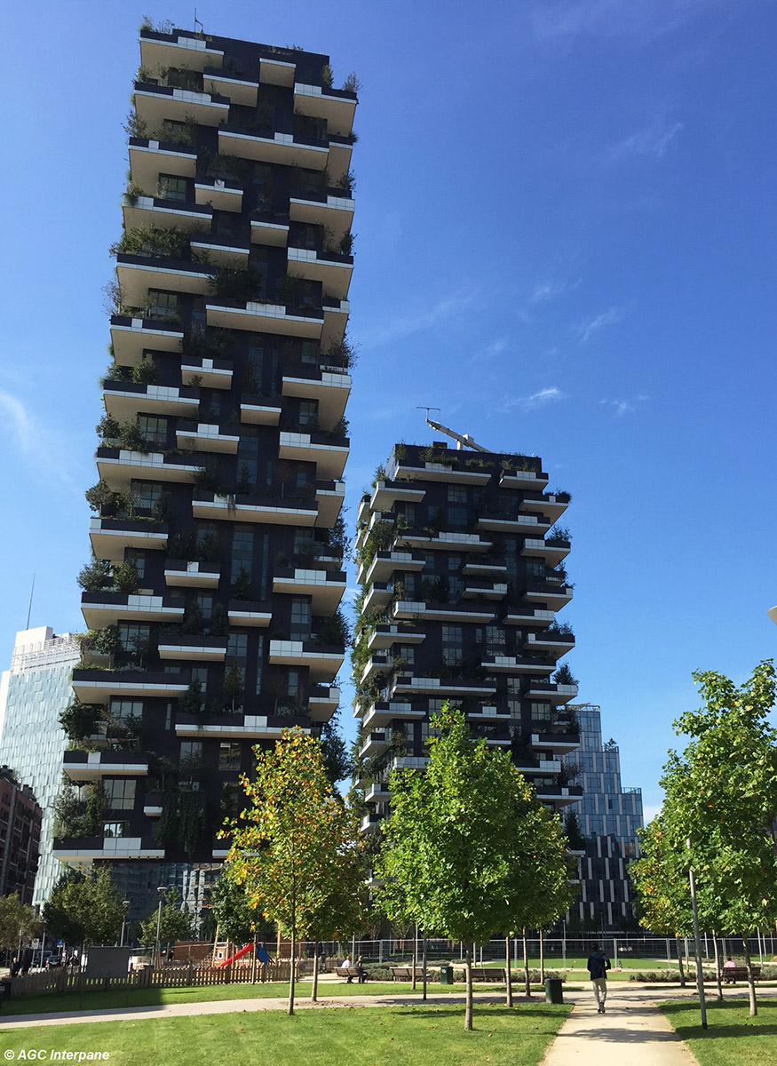 Mezinárodní cenu Highrise Award International za rok 2014 získali architekti z ateliéru Boeri Studio v Miláně za projekt Bosco Verticale, dvě obytné výškové budovy s fasádou, jejíž součástí je, jak naznačuje název, „vertikální les“. Z teras a balkónů těchto dvou hranolovitých věží o výšce 87 a 119 metrů vyrůstá zhruba 800 stromů a celá řada dalších rostlin, které působivě propojují přírodu s městskou architekturou. Rostliny a stromy pohlcují prach, přeměňují CO2 na kyslík a chrání byty před sluncem a hlukem. Energetickou rovnováhu věží navíc umocňuje použití 10 000 m2 speciálního skla od společnosti AGC na fasádách, skla regulujícího sluneční záření (ipasol neutral 73/42, ipasol neutral 48/27 a Stopray Vision-36T). Tato vysoce výkonná skla umožňují skvělou ochranu před přehříváním v létě, a zároveň dovolují přístup dostatečného množství světla do všech prostor budov.