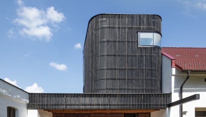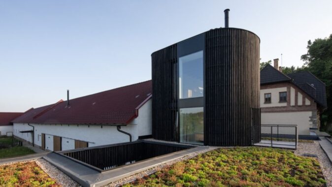 Pro novou vrstvu stavebních úprav byl zvolen severovýchodní roh dvora. Toto místo navazuje na vilu, která slouží pro pobyt 25 osob. Objekty pro zázemí zaměstnanců bývalého jednotného zemědělského družstva byly odstraněny, zachovány zůstaly původní kamenné sokly s částečně klenutým sklepením. Na jejich stopě vznikla jednopodlažní přístavba s plochou střechou, v rohu dvora ukončená třípodlažní věží, navazující výškou na chlévy se sedlovou střechou. Část objektu s klenutými chlévy byla zrekonstruovaná, nyní nabízí sál pro sto lidí s předsálím a hygienickým zázemím. Nová vrstva objektů v původní stopě je obložena opálenými modřínovými latěmi na svislo včetně systému stínění posuvem a skládáním.