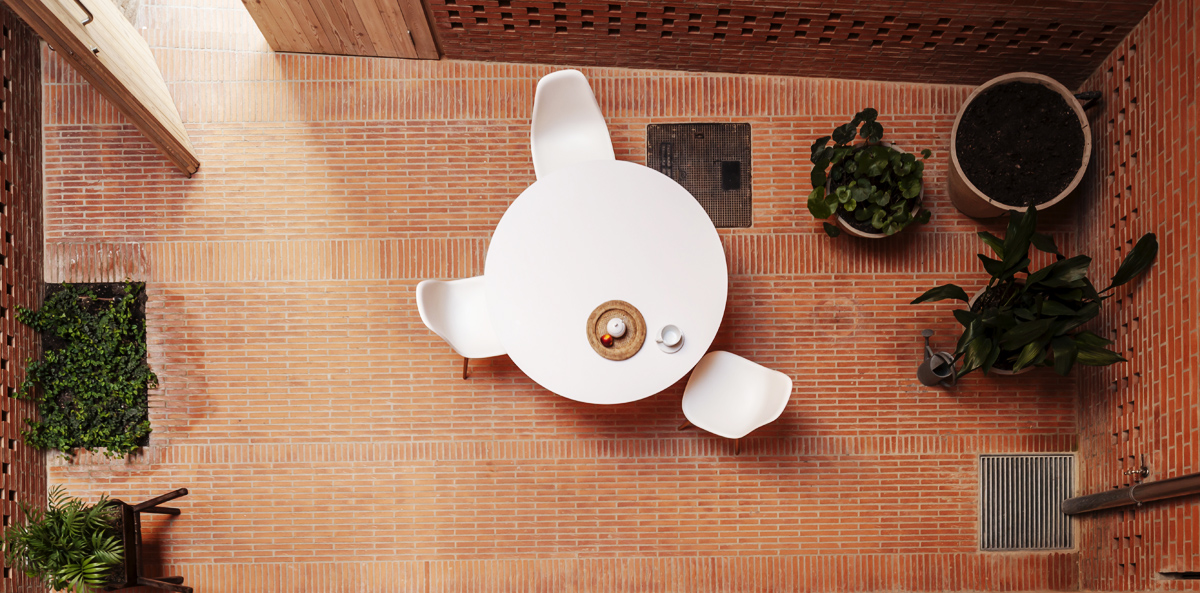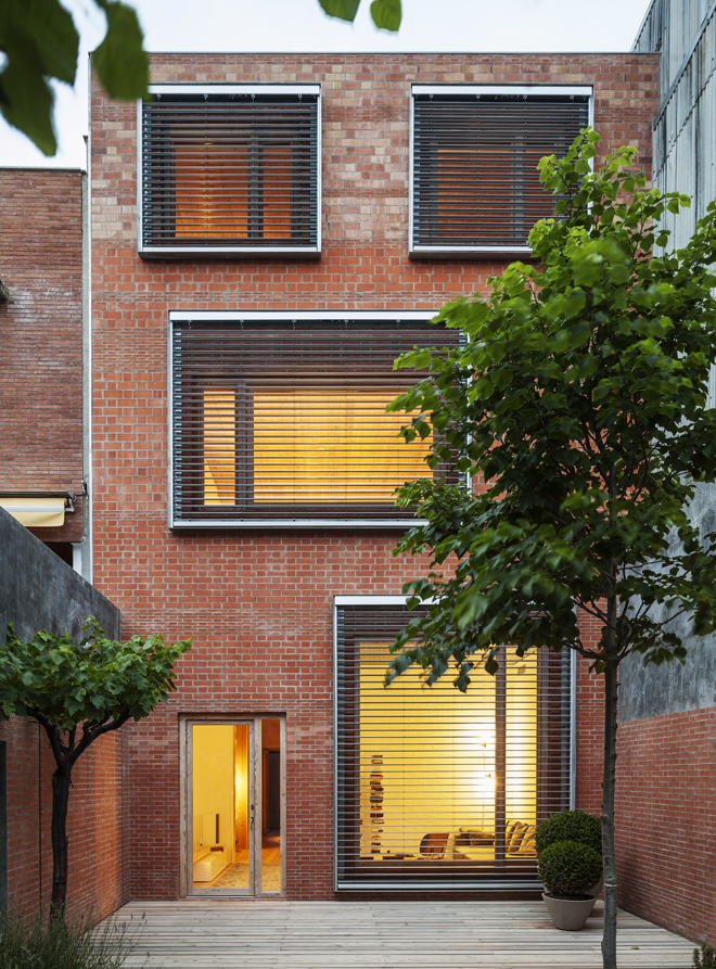 Dům vestavěný do 6,5 m široké a 56 m dlouhé proluky ve staré zástavbě je skvělým příkladem využití opuštěných, zdánlivě nevyužitelných prostor ve městě. Ústřední patio, typický prvek španělské architektury, odděluje soukromou obytnou část od firemní. Architekti promyšleně pracují se světlem, orientací, uzavřenými a otevřenými prostory a k tvorbě vnitřního klimatu využívají i konstrukční materiál – cihlu.