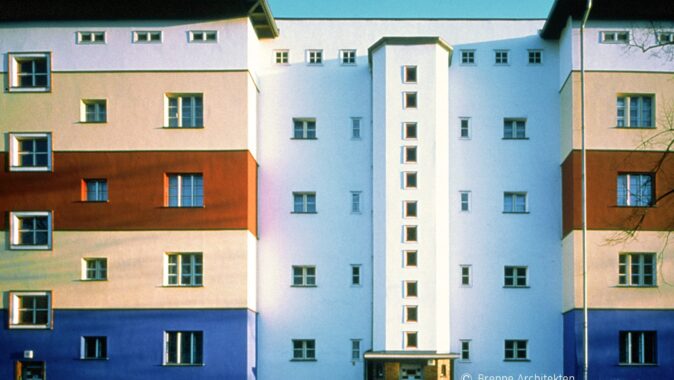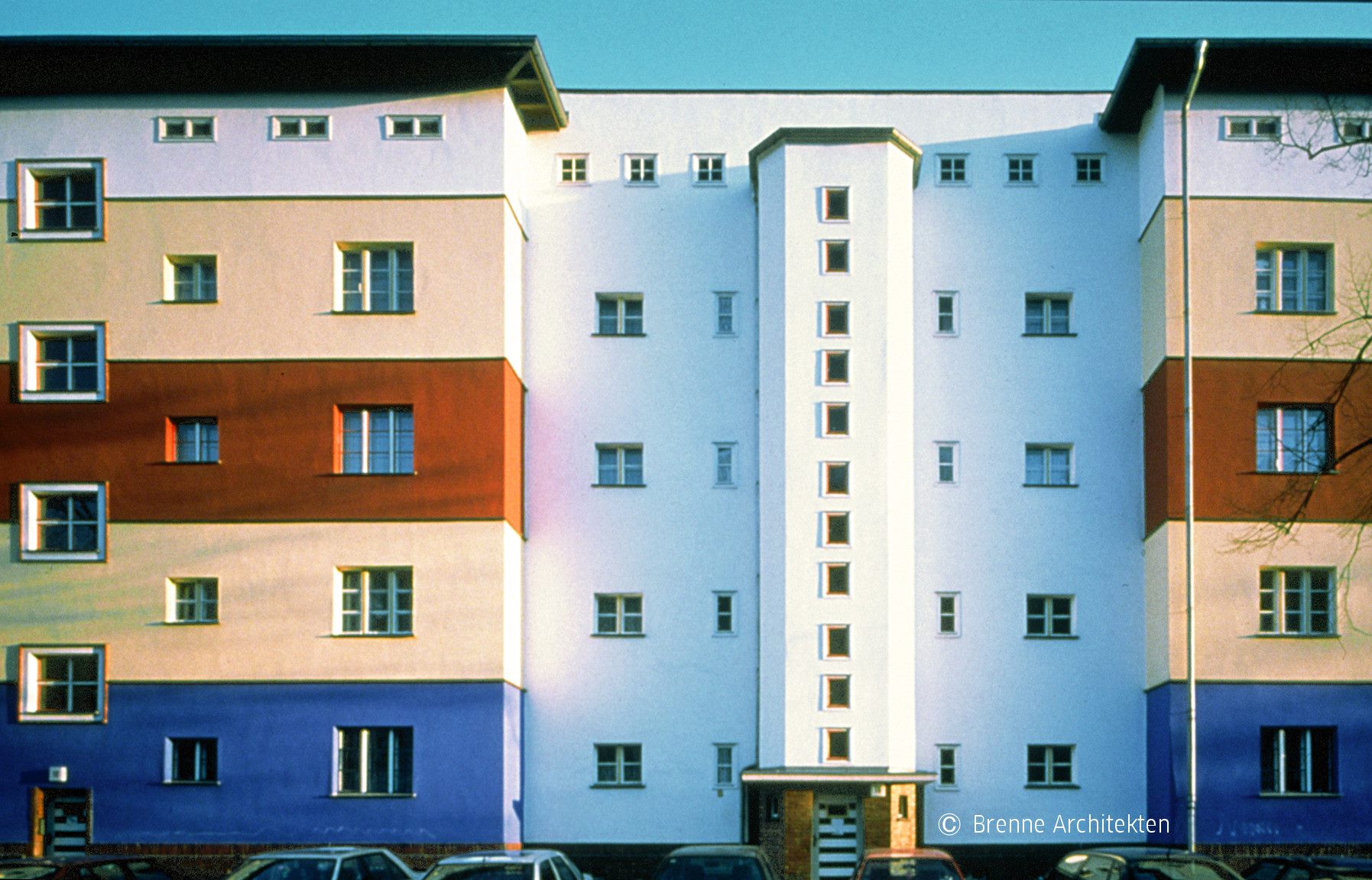 Bruno Taut se řadí k nejvýznamnějším německým architektům moderny, byl zároveň jedním z raných členů Werkbund Berlin. Svými stavbami sídlišť 20. let v Berlíně udal architektonická i urbanistická měřítka pro 20. století. Ačkoliv při práci s detailem a jednotlivostmi nevynikal, právě jeho architektura dosahovala jedinečného působení v prostoru. Skrze „umění proporcí“ stavebních typů pro velká sídliště a jejich umístění v prostoru, jakožto i zavedením kategorie „venkovní obytný prostor“ reformoval dosavadní způsob bydlení. Kvalita architektrury Bruno Tauta nespočívá pouze v užití barvy k vytváření prostoru a a práci s ní jako s estetickým stavebním prvkem, ale především v její sociální funkci, kterou nechal vyniknout. Tak se barva stala empatickým vyjádřením své stavby.