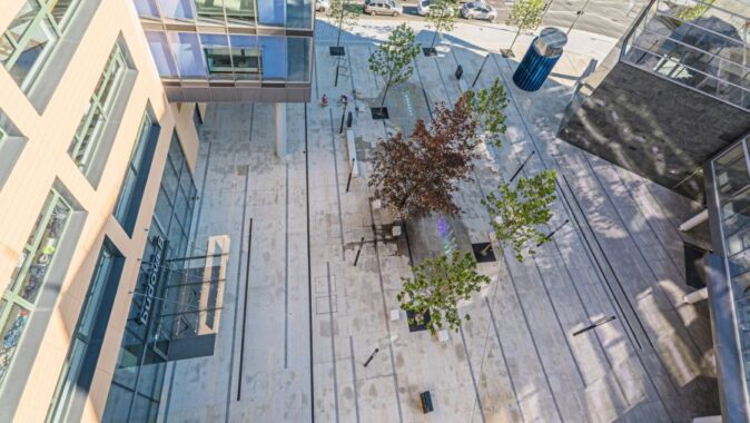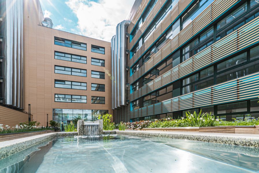 Budova B prošla kompletní rekonstrukcí zahrnující modernizaci všech vnitřních technologií, nové opláštění v zemitých odstínech nebo velkorysou střešní zahradu bohatě osázenou zelení. Cílem rekonstrukce bylo vytvořit kvalitní pracovní prostředí splňující veškeré nároky na pohodlí i ekologický provoz. V rámci renovace byl také zušlechtěn přilehlý veřejný prostor. Budova získala nové otevřené atrium s četnými možnostmi posezení, bohatou zelení a vodním prvkem, které slouží jako venkovní kancelář i relaxační plocha. Před budovou bylo také vybudováno nové Náměstí Ellen G. Whiteové se vzrostlými stromy a tryskovou fontánou.