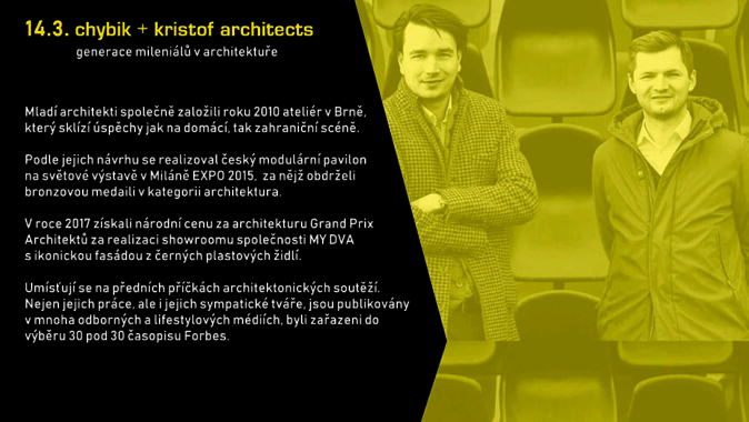 Mladí architekti Ondřej Chybík (*1985, Brno, CZ) a Michal Krištof (*1986, Kláštor pod Znievom, SK) společně založili v roce 2010 ateliér v Brně, který sklízí úspěchy jak na domácí, tak zahraniční scéně.