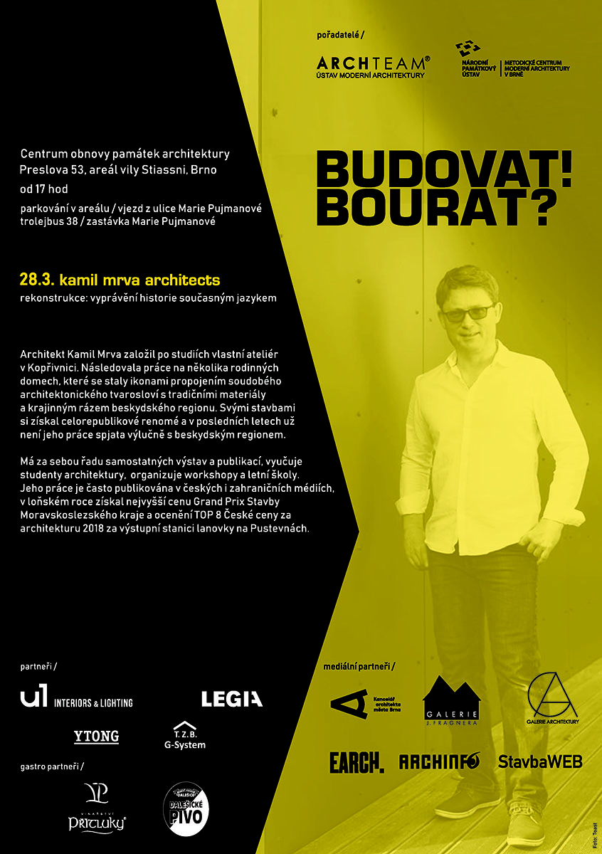 Třetí v pořadí v cyklu přednášek BUDOVAT! BOURAT? nám svoji tvorbu představí valašský mistr!