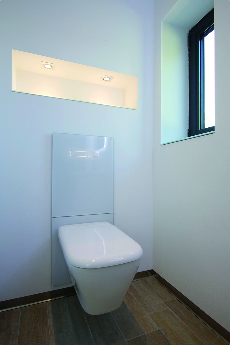 Technologie jsou uloženy za zdí a jediné co je viditelné, je kryt z bílého