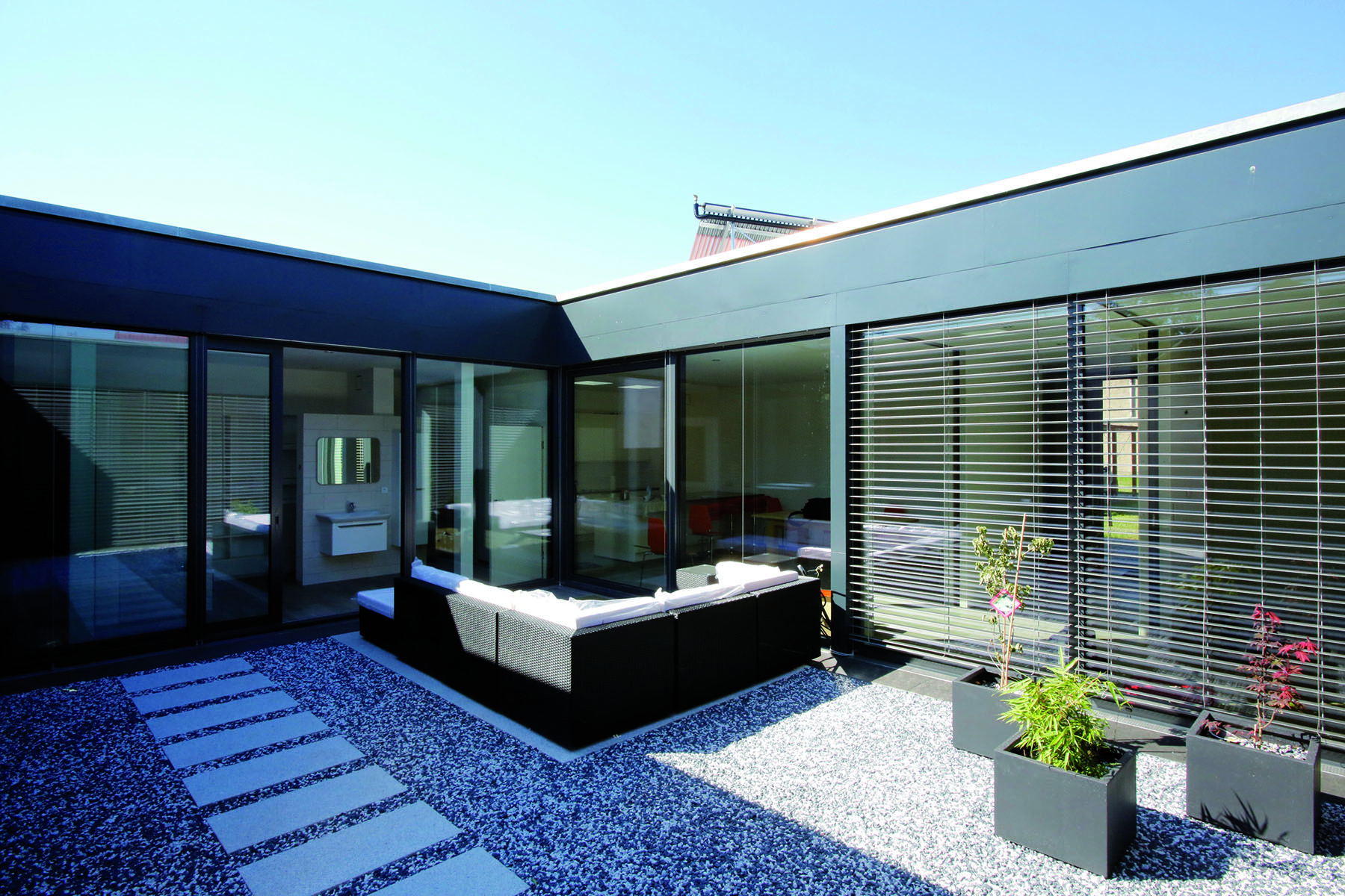 150 čtverečních metrů obytné zóny a 50 čtverečních metrů atria. Společnost TECE