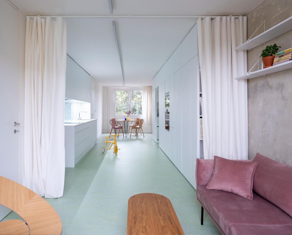 Mladá rodina zdědila byt v panelovém domě ze 70. let, který před zásahem architektů v roce 2020 neprošel žádnou změnou. Původní bytové jádro bylo natolik autentické, že se po domluvě architektů s Moravskou galerií v Brně stalo součástí její stálé expozice.