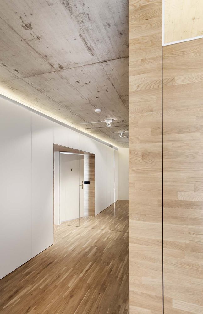 do spojitého prostoru bytu. Celý byt také propojuje jednotný strop z