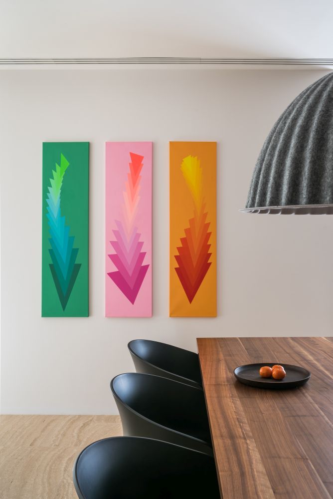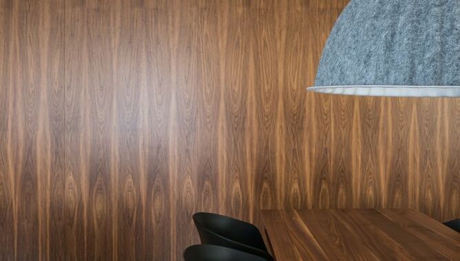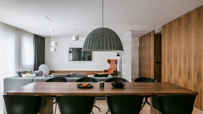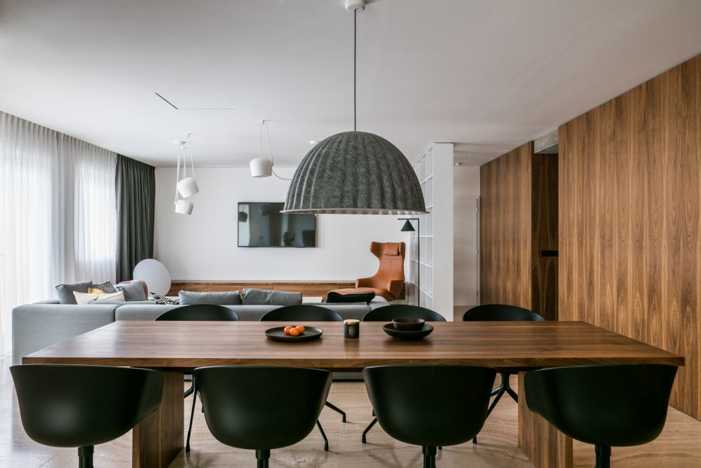 obklad stěn. Barevnost interiéru byla postavená na poctivé materialitě