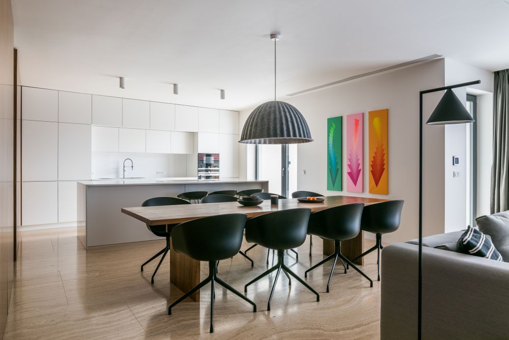 bytě je kromě ložnic dlažba z travertinu, formátovaná přesně podle rozměrů