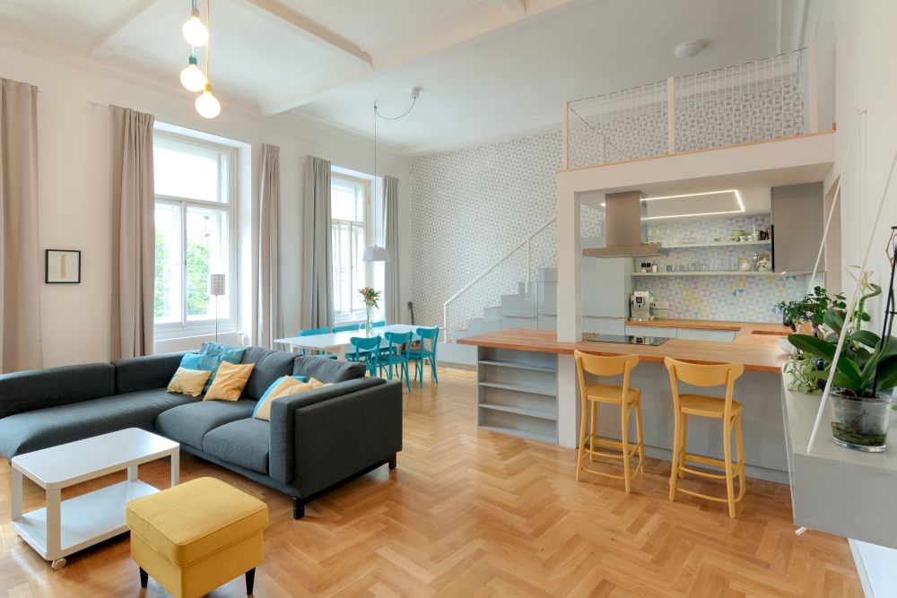 co nejvíce zvětšit. Díky vysokým stropům, které ještě nesou původní štukovou