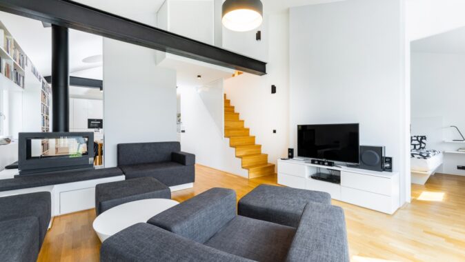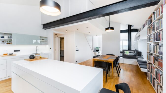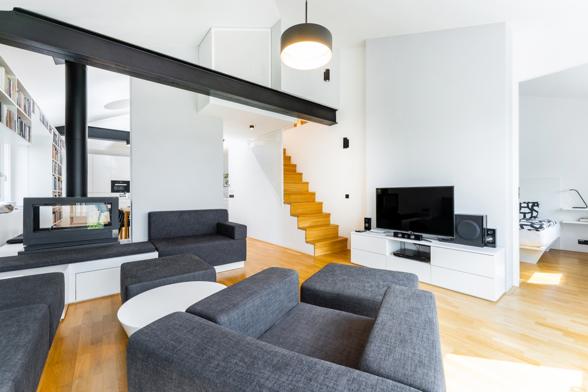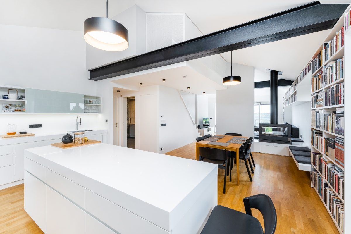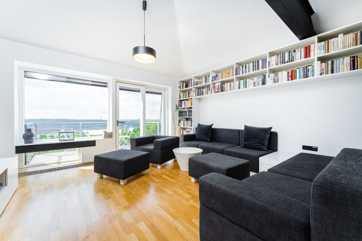 Byt se nachází v mansardové nástavbě na rodinný dům v Praze na Břevnově. Před rekonstrukcí měl byt světlou výšku 2,6 m a nad bytem byla půda. Pouze část půdy se využívala jako patro pro hosty.