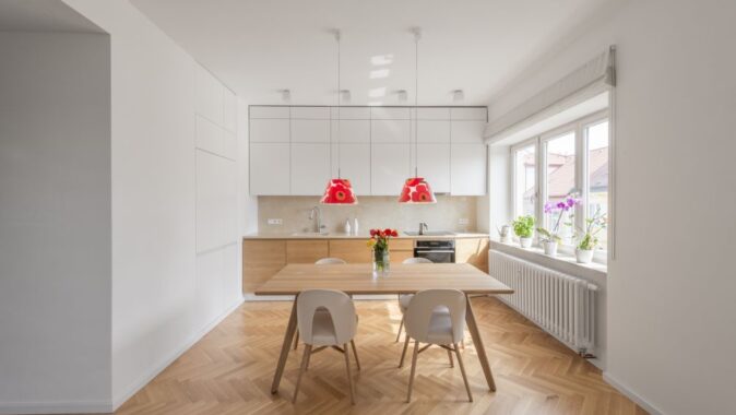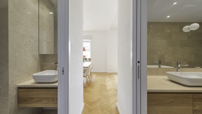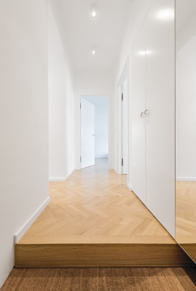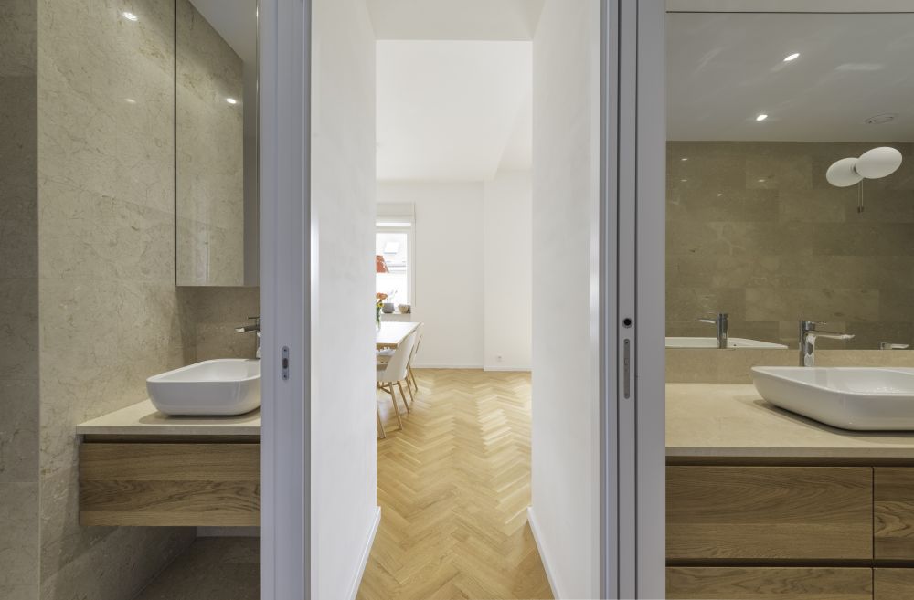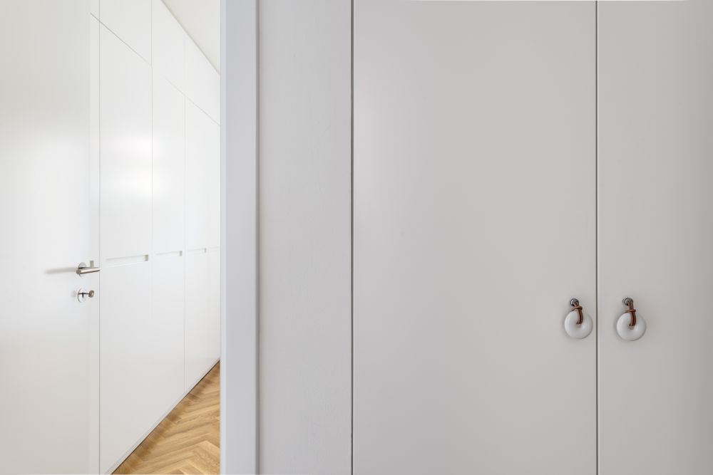 přítomnost dvou balkónů. Koncepčně je byt rozdělen na tři zóny: klidovou