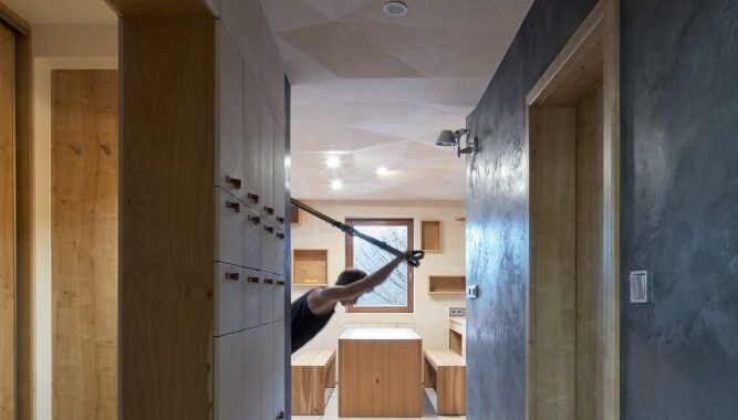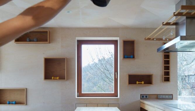 novostavby. Klient je povoláním muzikant a zájmový lezec. Podlahy a okna jsme
