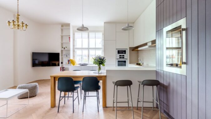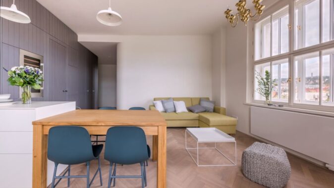 Rekonstrukce bytu probíhala v činžovním domě u rušné ulice,