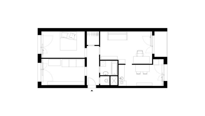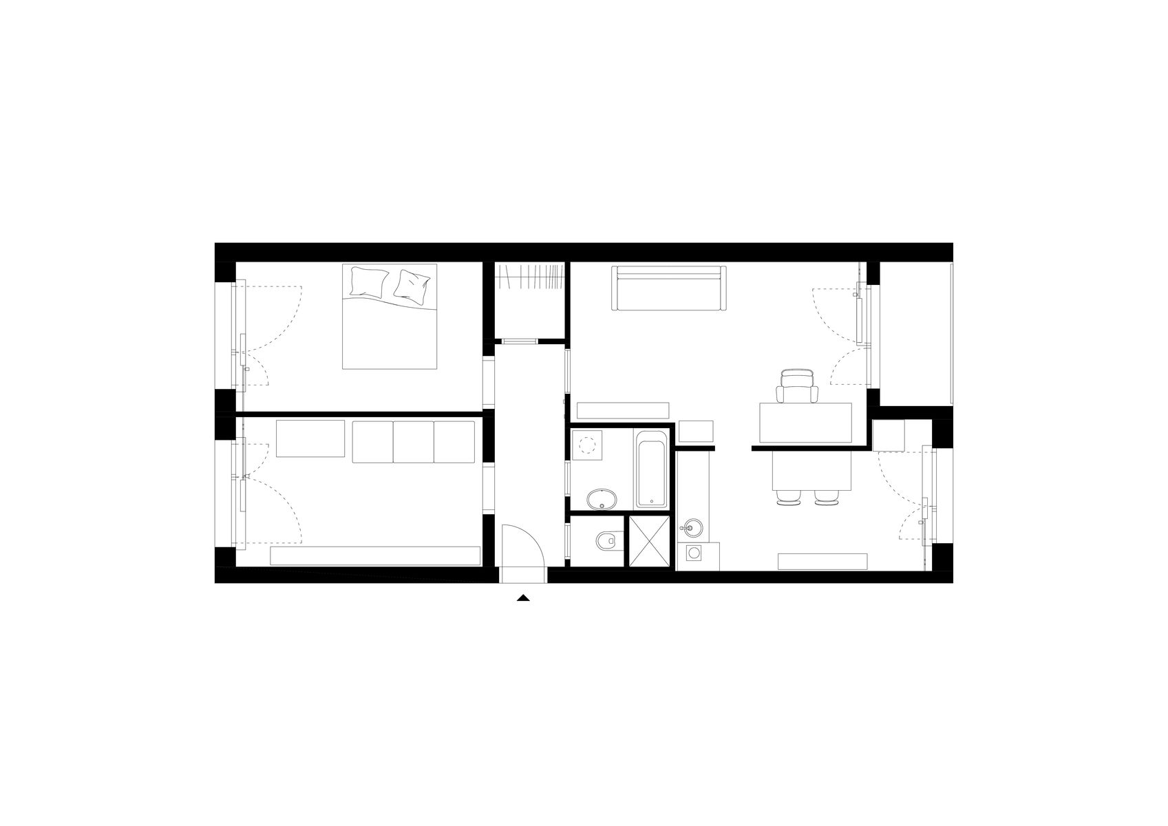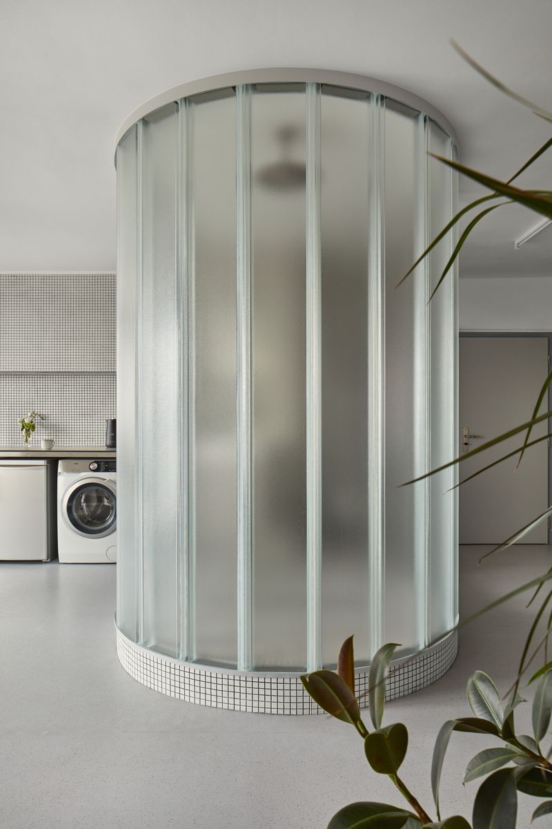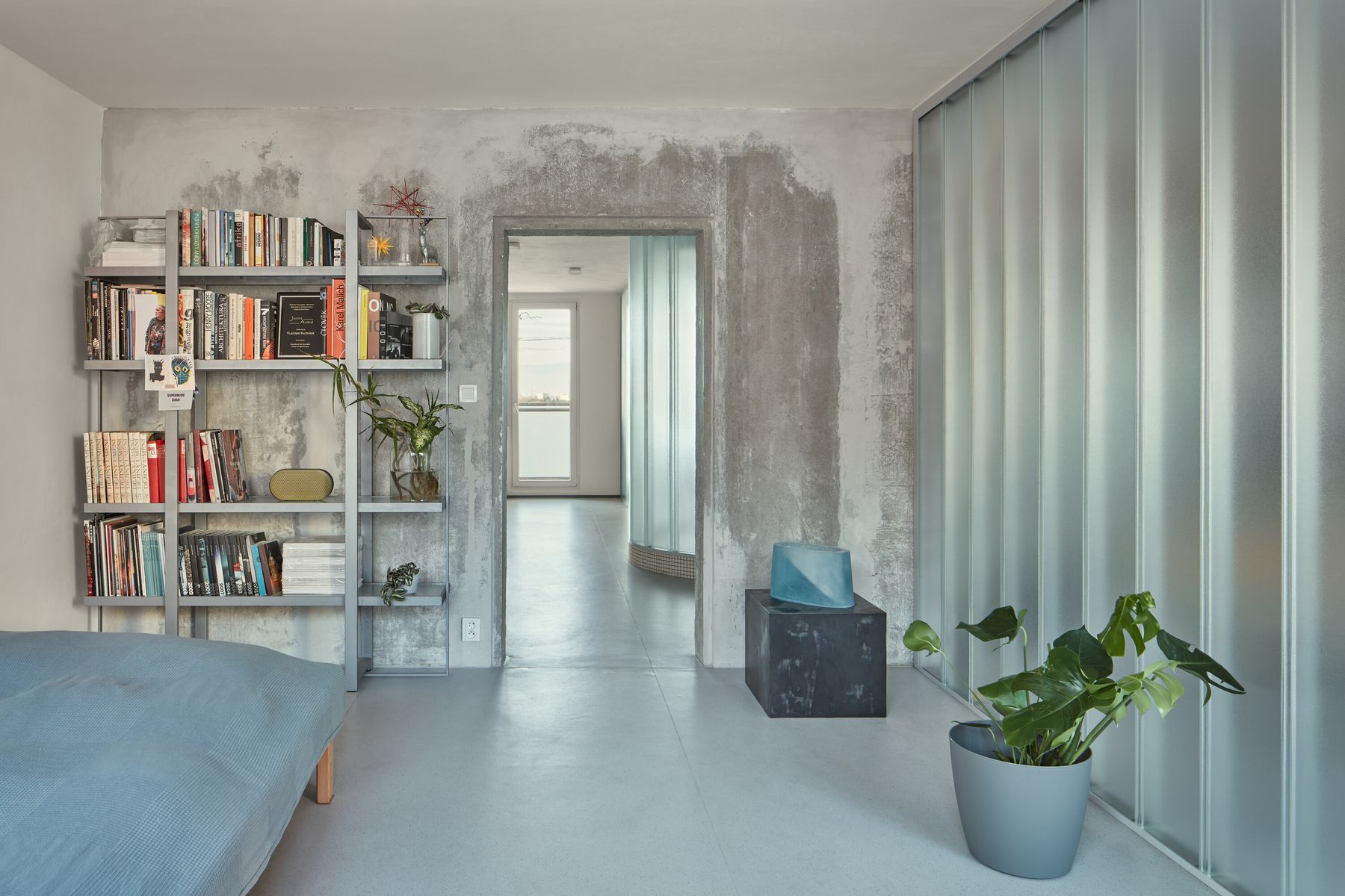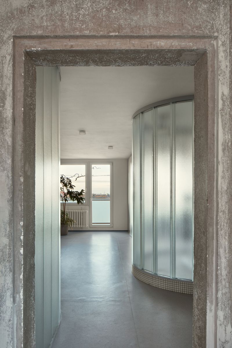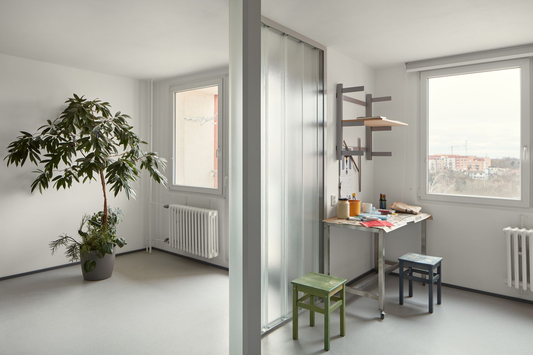 Vladimír Bachorík, a sculptor and glassmaker, has always worked in his apartment in a Prague housing estate – that is why he wanted to design a glass workspace as part of a total reconstruction. What he did not want was a door. An unusual assignment has the valuable potential to generate unusual solutions, which we decided to use as an experiment: what are the maximum possibilities of a classic prefabricated flat? How far can we go?
