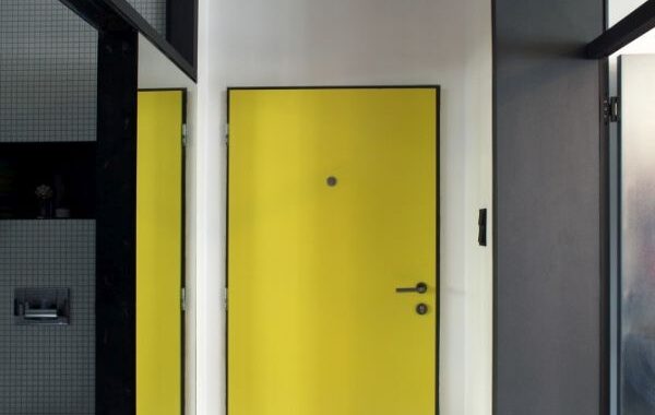 objevují i v koupelně, wc a zádveří bytu. Bílé plochy stěn, hry s formáty