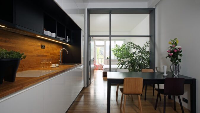 hlouběji do hmoty bytu a celkově ho kompaktní a odlehčuje. Nadsvětlíky se