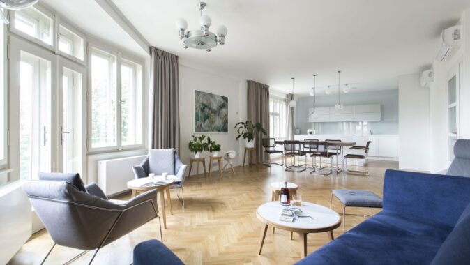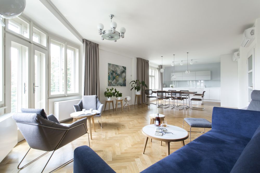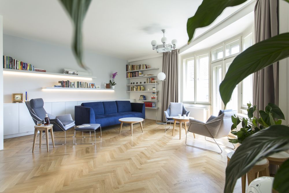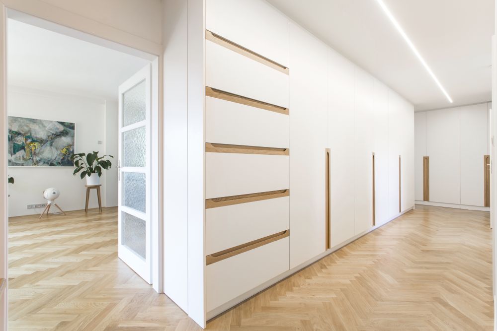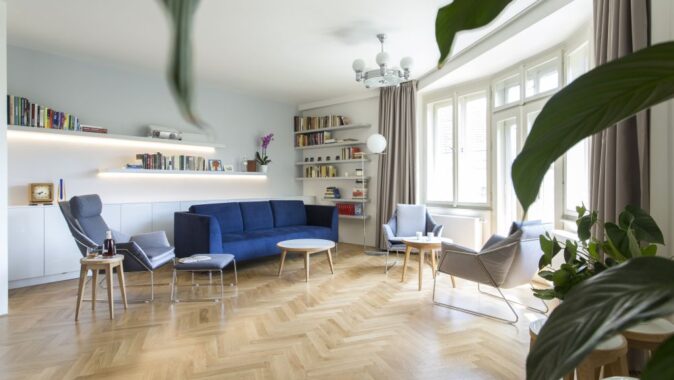 pojatá rekonstrukce a návrh interiéru bytu v pražských Dejvicích. Citlivá